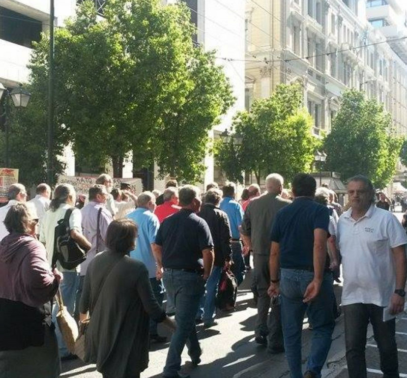 Η Ομοσπονδίας μας σήμερα, Πέμπτη 15 Οκτωβρίου 2015, παρευρέθηκε στο Υπ. Εργασίας με τον Γ. Γραμματέα, Γιάννη Βασιλόπουλο, στη συγκέντρωση διαμαρτυρίας που πραγματοποίησαν Σωματεία της Αθήνας για τα νέα μέτρα στο Ασφαλιστικό.